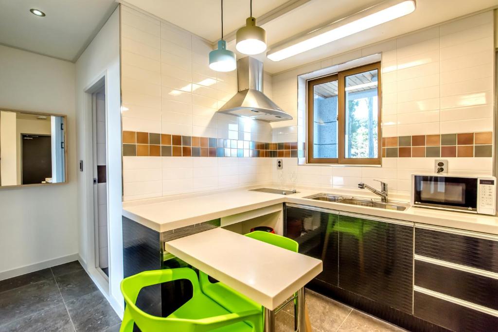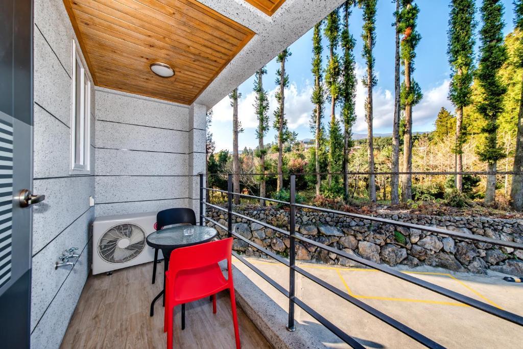 Advantages: The accommodation has a spa bath and a hammock. I've been here three times and stayed in different rooms each time, and it seems that they all have these features. The owner and staff are friendly, and housekeeping is done quickly. They also provide plenty of towels. I didn't use the pool, but it looked spacious and clean. The view from the veranda with the hammock is beautiful, and the air is nice since it's in the mountains, making it an optimal place for healing while enjoying a cool breeze. Basic amenities like a coffee pot, refrigerator, electric stove, dishes, cooking utensils, combs, hair dryers, shampoo, and conditioner are all provided. There is a convenience store nearby that is open until 11 PM, but there are hardly any other restaurants in the vicinity. It might be good to use the store operated by the accommodation or to buy bottled water in advance. Tip: Since it is located in the mountains, there may be restrictions on walking. However, I walked for about 20 minutes to a bus stop where the intervals are not that long. The way is straightforward, so if it’s not too hot, it’s nice to walk as a form of light exercise. There is a bus that goes directly to Seogwipo city right in front of the accommodation, but the intervals are long, so it’s best to check the time before heading out to make it convenient. They inform you that bath additives are not allowed in the tub and usage is restricted after 10 PM. I recommend filling the tub with water by 9 PM. As someone who prefers to walk, despite the inconvenient location, I find this accommodation personally healing and I recommend it!