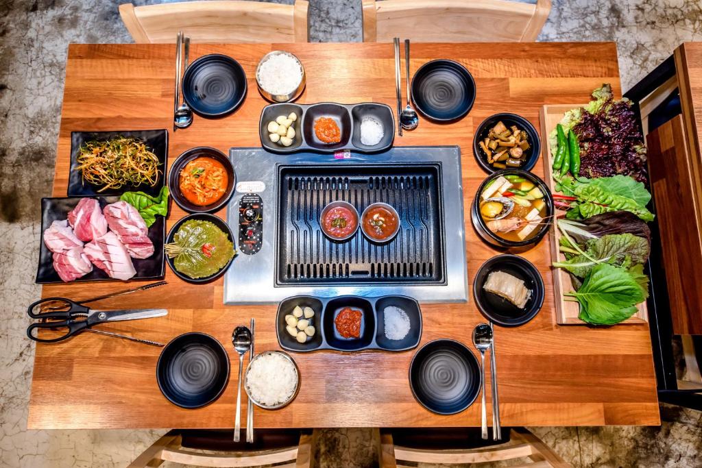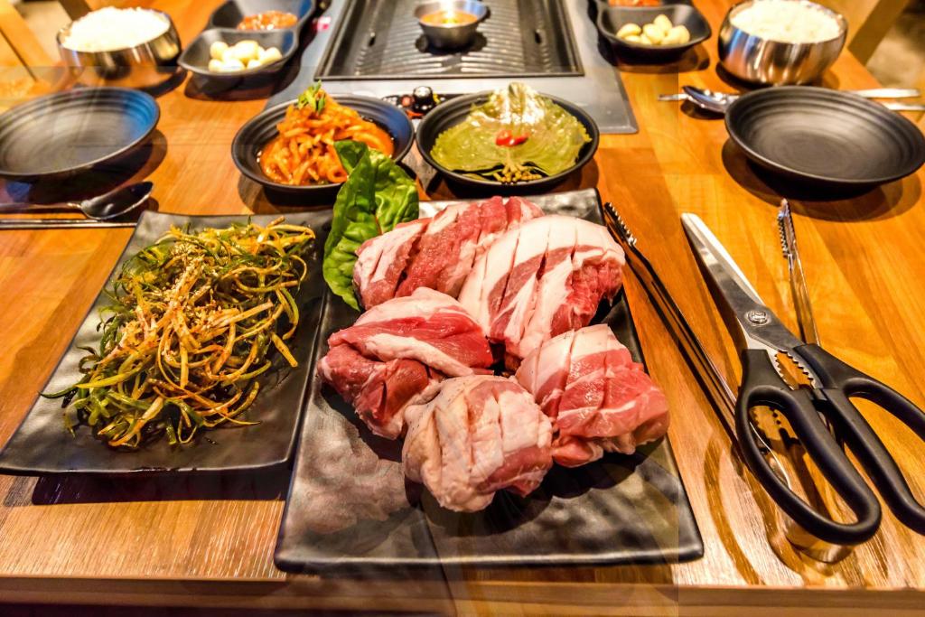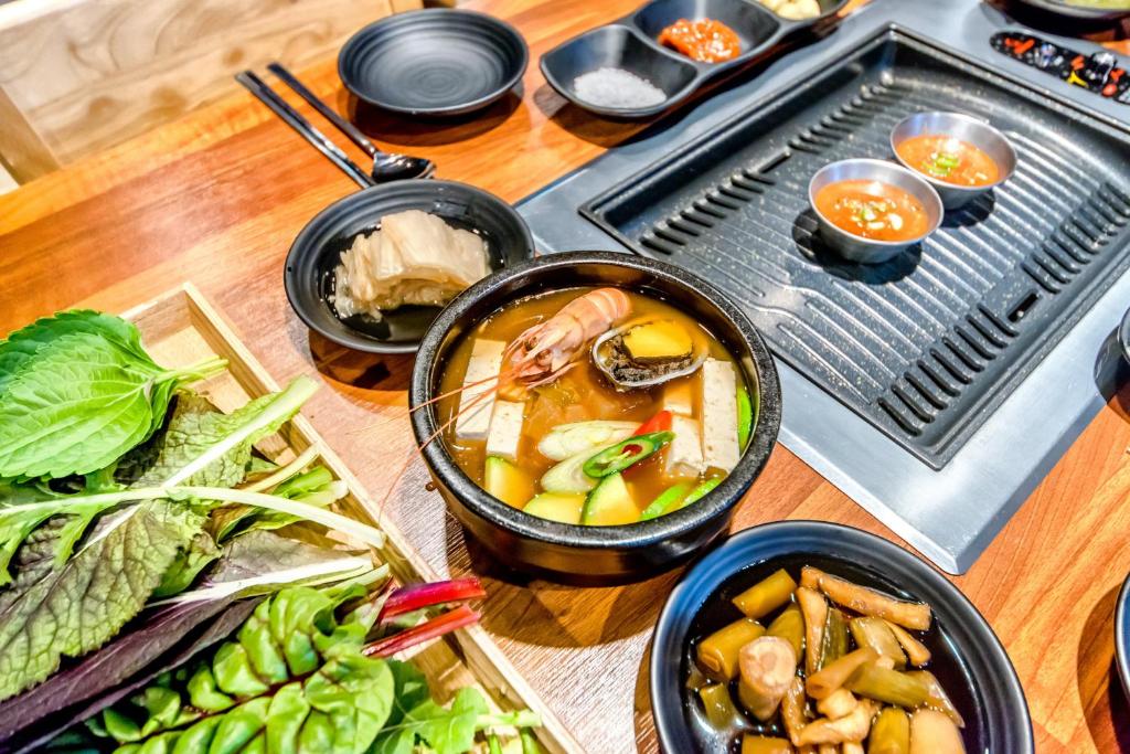 When it comes to dining options, Donaeko Hill Resort's surrounding area has a plethora of choices to satisfy every palate. From the mouthwatering seafood delights of Nangtteule Shimpang and the succulent lamb dishes of Lamb and Black, to the traditional Korean flavors at Seongmi Garden and the cheesy goodness of Cheesus, there is something to please every taste bud. For those craving authentic Jeju cuisine, Gosari Restaurant offers a delightful selection of local dishes made with fresh ingredients. If you're in the mood for Italian fare, Anitta Pasta serves up delicious pasta dishes with a Korean twist. For a taste of Japanese cuisine, head to Morino Aru yo, where you can savor a variety of sushi and sashimi. Hansuwi and Muamdon are perfect for those looking to indulge in Korean barbecue, while Ugum offers a fusion of Korean and Western flavors. With such a diverse range of dining options just a stone's throw away, guests at Donaeko Hill Resort are truly spoilt for choice.
