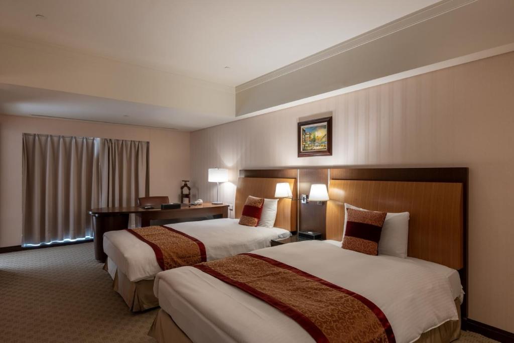 Discover a variety of inviting room types at Evergreen Plaza Hotel in Tainan, designed to cater to different guest needs and preferences. Whether you're traveling with family or seeking a more private retreat, options like the Family Suite offer generous space of 69 square meters with versatile bedding arrangements, while the Royal Suite provides an expansive 68 square meters of comfort with a luxurious ambiance. For those seeking cozy yet stylish accommodations, the Deluxe Double Room and Deluxe Twin Bed rooms, each around 34 square meters, provide perfect options for couples or solo travelers. Additionally, the Family Twin rooms and Standard rooms offer practical and comfortable choices for a seamless stay.