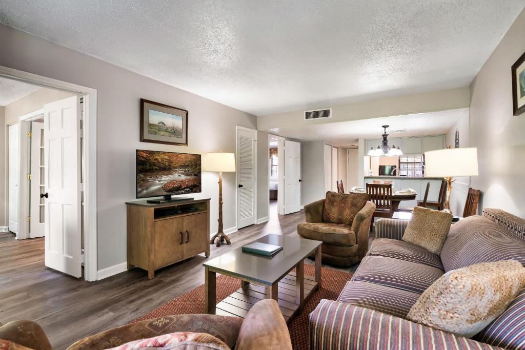 Gatlinburg Town Square offers a diverse selection of room types designed to suit various guest preferences and group sizes. Whether you're looking for a cozy studio with a queen bed or sofa bed, a spacious one-bedroom condo featuring a king bed and additional sleeping arrangements, or a larger three-bedroom apartment for extended stays, you'll find the perfect fit here. Accessible rooms are also available, ensuring comfort and convenience for all travelers.