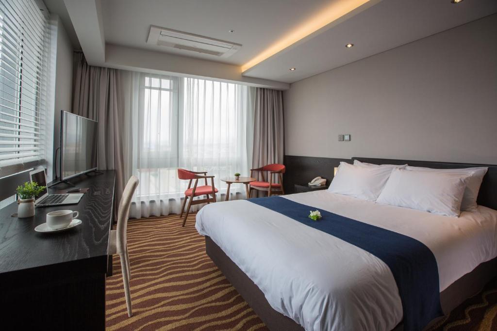 The room is large as compared to many other Jeju hotel. The overall cleanliness meet our expectation. Although the hotel is very near to the airport ( which we can see the airport from the corridor window pane ), the sound proof is very good. The beds are super comfortable. When you walk out, there are good restaurant like the Jeju black pork bbq ( ask the hotel staff ). The old concern is car park has limited space and the road is narrow. If you drive a MPV, you need to take extra pre cautionary. Other than that, it was a very pleasant and comfortable stay. Will surely go back again!