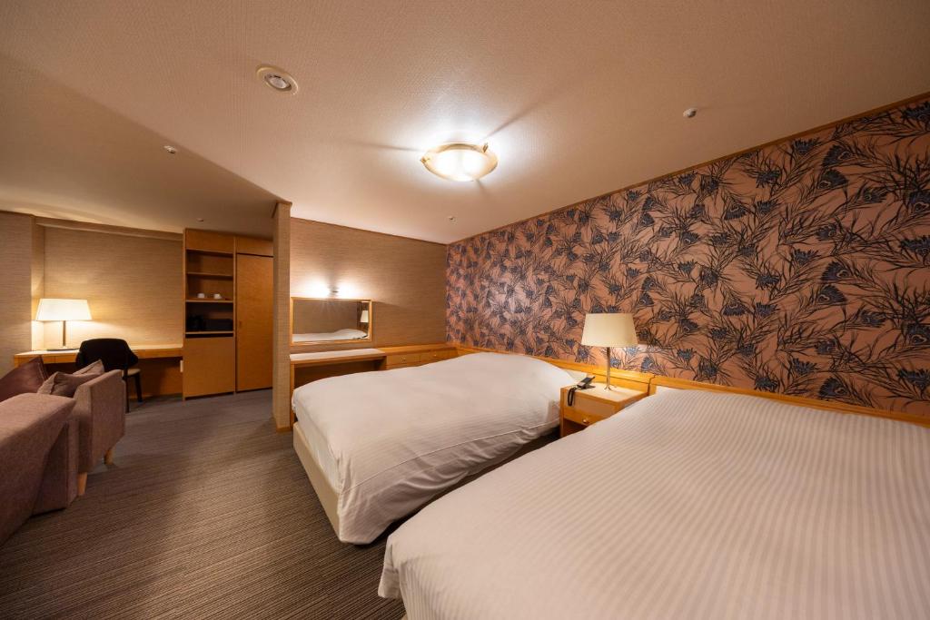 Indulge in the Club Japanese Western Suite with Open-Air Bath - Non-Smoking, a lavish 70 square meter room featuring either 2 Semi Double-Beds or 3 Japanese Futons. For those seeking a deluxe experience, the Deluxe Twin Non-Smoking Room offers 70 square meters of space with 2 Double Beds or 1 Sofa Bed. If you're looking for a budget-friendly option, the Economy Twin Non-Smoking room provides 30 square meters of comfort with 2 Single Beds.