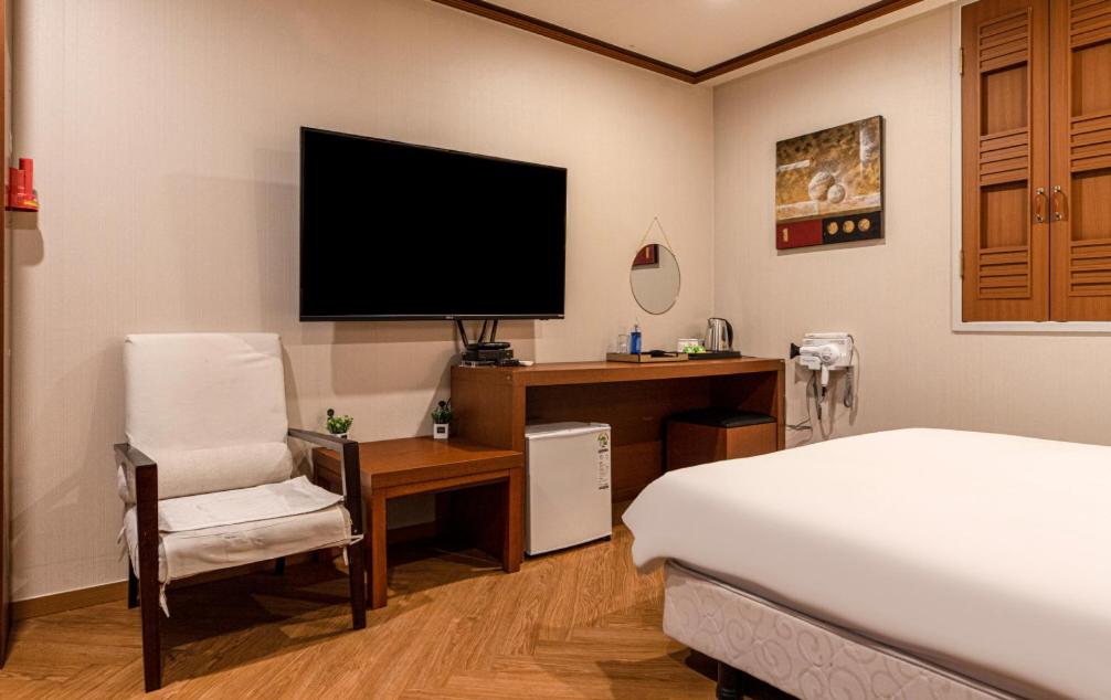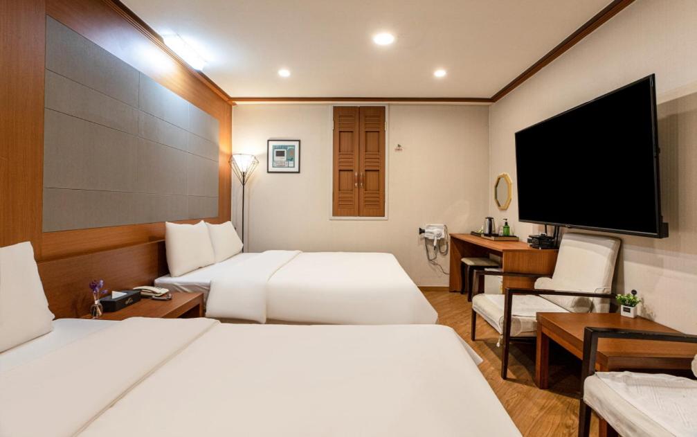 my regular ICN layover hotel was super expensive so I decided to stay here for super cheap. It was a surprisingly big room. It's older and definitely wasn't sparkling clean (mold in the grout, stain on side table, unswept floor in less-trafficked area) but for the price it was great & cant be beat. AC worked well, water cooler and microwave in hallway. Would stay here in a pinch for sure, but might pay a little more for something a bit cleaner. Overall was happy with it, and it was super quiet too (Monday night). less than 10 min walk to/from the train station too!