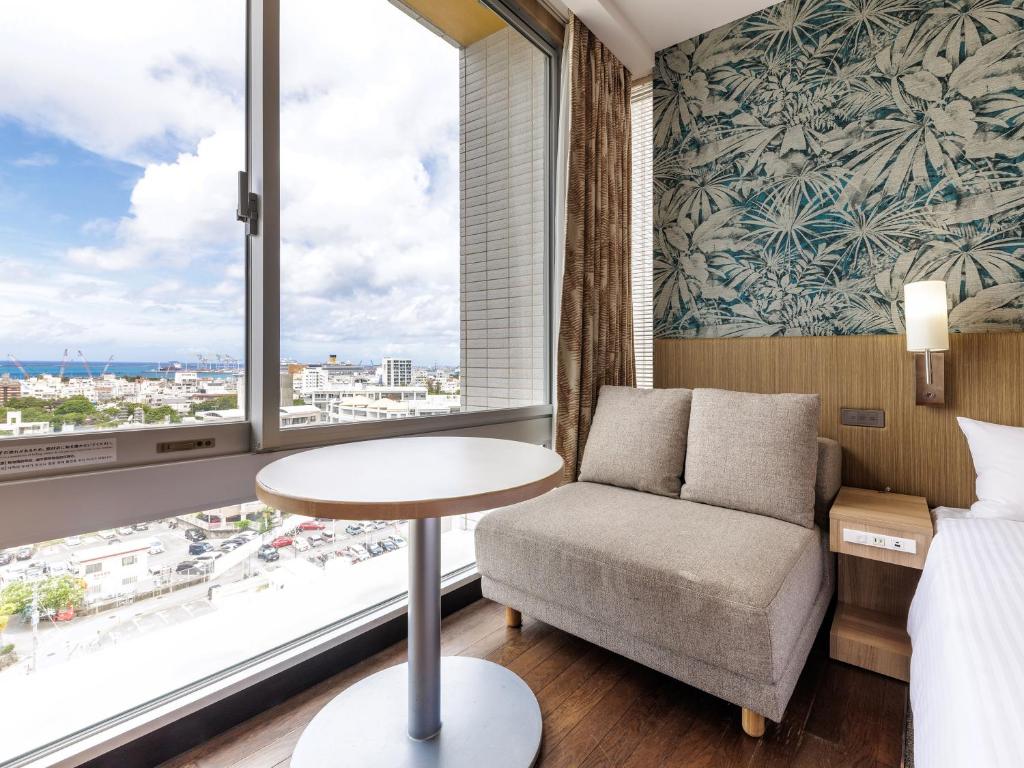 After my business trip, I stayed privately for a few nights. I was in a single room on the top floor, which was indeed a bit cramped, but the absence of a wall-mounted TV and desk did not create a sense of pressure. Most importantly, there was a large window with a single armchair and a round table by the window, where I could spend a long time gazing at the distant sea, watching Netflix, or using my laptop. Although cleaning is not done every day, they kept the room clean, and towels and pajamas were replaced daily. Many of the staff at the front desk were foreigners, but I had no communication problems with anyone, and they seemed to provide courteous service thoroughly. The location is good and convenient for going out to Kokusai Street. There are convenience stores nearby, as well as shabu-shabu restaurants and izakayas, so I had no trouble finding places to eat. I liked it so much that I extended my stay. The next time I come to Okinawa, I would like to request a high floor again.