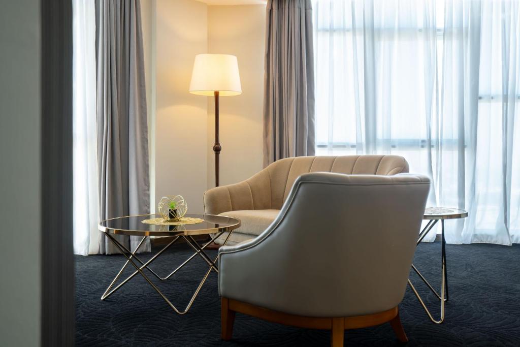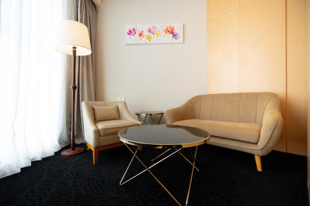 The Deluxe Room offers a generous space of 27 square meters and features either 1 double bed or 2 single beds, providing a cozy and comfortable stay. For those seeking a more lavish experience, the Executive Suite boasts a spacious area of 61 square meters and is furnished with a plush king bed. Families can opt for the Family Room, with its ample space of 48 square meters and the choice of 1 single bed or 1 king bed.