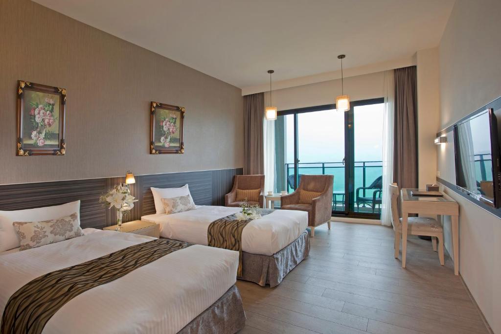 Renyi Lake Hotel in Chiayi, Taiwan, offers a cozy and comfortable stay with great views. The hotel structure is grand and resembles a 5-star property, providing guests with a luxurious experience. The rooms are clean and well-maintained, offering a separate living area and two large beds for added comfort. The hotel's excellent service ensures that guests feel pampered throughout their stay.
