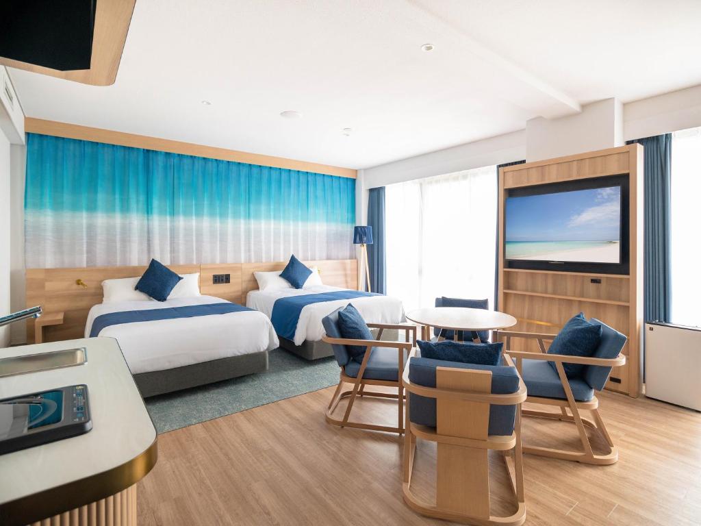 Situated in a prime location, our hotel has received a fantastic rating of 8.2 for its picturesque setting. Immerse yourself in the natural beauty of Kume Island, with its pristine beaches, crystal-clear waters, and lush greenery. Whether you're lounging by the pool, exploring the nearby attractions, or simply taking in the stunning views, you'll be captivated by the enchanting surroundings.