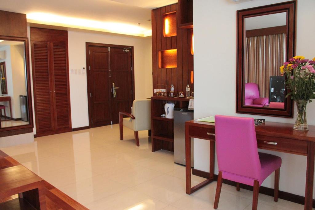 The room is spacious and relaxing. The recliner chair was a welcome treat. The bed was luxurious and the pillows were soft and comfortable. Enjoyed the relaxing welcome foot massage! Breakfast at their in-house restaurant was delicious. with varied choices. Lots of good eats a few steps from the hotel like the Boardwalk food strip, The Venue and The Shops at Atria. Staff were courteous. Room cleaning was done everyday upon request. It felt like home and would love to stay here again.