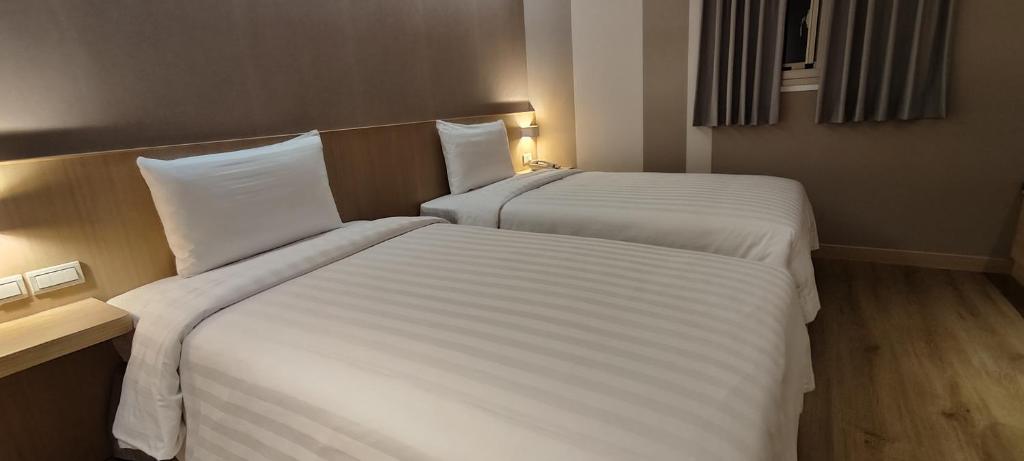 We stayed room with 2 twin beds. Room is newly remodeled and clean. Beds are comfy. Outlets are conveniently located by the beds which is a huge plus! Breakfast is quite good with lots of selections. What really stood out was their hospitality. Very courteous and accommodating. Keybo at the front desk gave excellent recommendations on food and drink. Mr. Liu even gave us a ride to the train station which saved us some walking! Uber to night market is around $150 nt. We were able to walk to most main attractions from the hotel. It’s one of the best hotel experience I’ve had so far (out of half a dozen hotels). Things to note: no hooks in the bathroom, disposable hand towels (does have cloth body towels), smell of smoke in the room even tho it’s non- smoking.