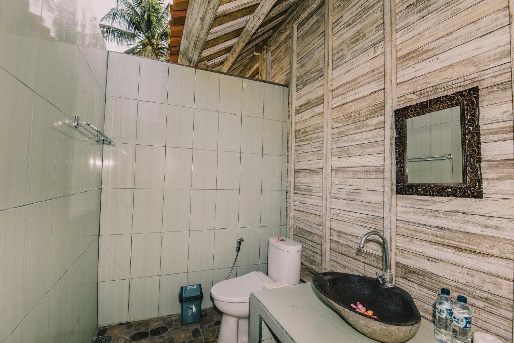 Friendly family run guesthouse with attractive gardens and small pool by the waterway with Lembongan. Each of the huts have very comfortable beds and good quality bedding. Good air conditioners which are very quiet when sleeping. Wifi stronger than many other places on the islands. A number of food / mini local beach club options within walking distance along the coast road and a convenience store. Hosts are knowledgeable and a great help with arranging activities and travel. Helps to have a rental moped with the hosts can arrange. Enjoyed our week stay with Agus and family.
