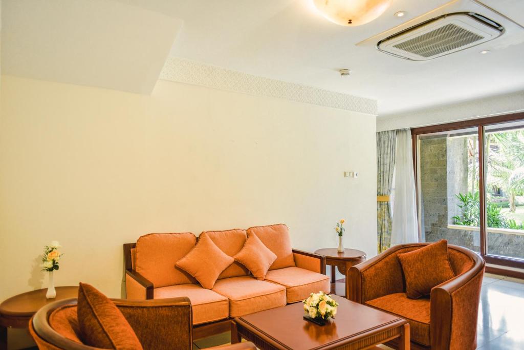 This resort offers friendly and welcoming customer service, an ocean-view pool with a lively atmosphere, and a lovely traditional Balinese ambiance. It's conveniently located near the airport, eateries, and Kuta Beach, providing good value for well-kept amenities like a fully stocked bar and delicious food. The breakfast buffet has several tasty options, and the spacious, clean, and comfortable rooms make it an ideal place for a peaceful vacation.