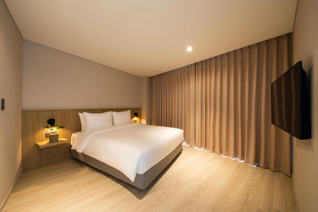 We stayed in the Family Suite S. Although it was described as a mountain view, we were pleasantly surprised to find that it also offered a beautiful view of the sea as soon as we entered the room. The suite features a master bedroom with a double bed, plus a small “alpha room” with a tent where children can play and sleep — perfect for families. There’s also a spacious living room and a kitchen equipped for light cooking. The bathroom setup was convenient, with one shared bathroom including a bathtub and an additional one attached to the master bedroom. While it was a bit disappointing that the swimming pool required an extra fee, the facilities made up for it: an indoor kids’ playroom, an outdoor space with toy cars for children, and a walking trail with views of Wangsan Beach that adults could also enjoy. We didn’t use the breakfast or dinner options, but the restaurant on the Lobby floor was impressive, with great views and a well-thought-out menu. Both my young child, myself (Korean), and my European husband were fully satisfied. Honestly, being able to eat comfortably during a trip already feels like half the success! Most importantly, the staff were kind and welcoming, which made our stay even more enjoyable.