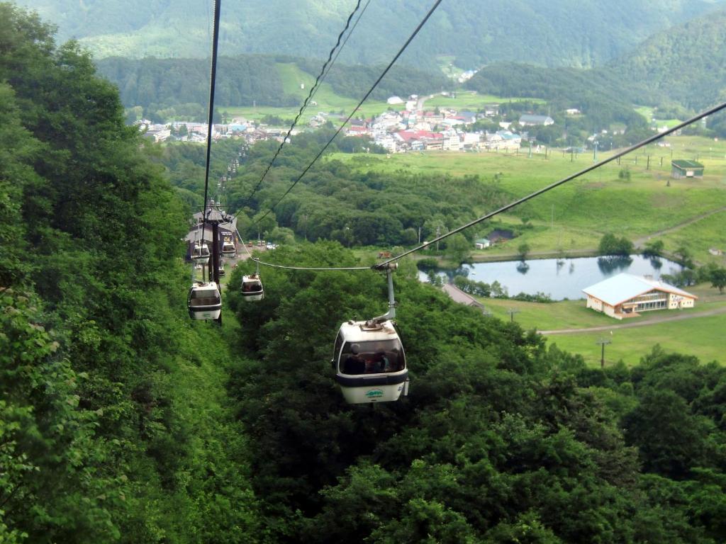 It is the first building from Iwatake gondola and in walking distance. However, carrying your ski gear walking across the snow is not straight forward. The staff are helpful and dinner is tasty. Though small, evaluator, inside and outdoor onsen, big dry room for ski gear are all available. Good value for money.
