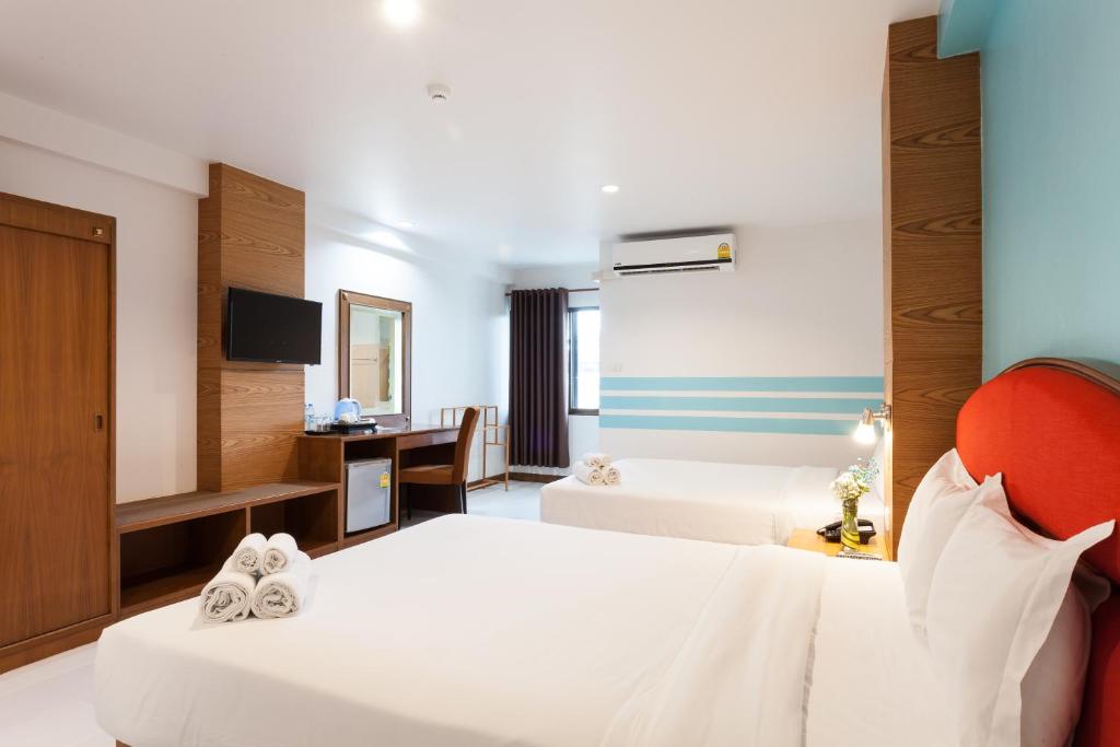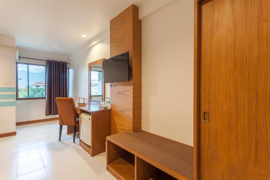 The hotel room is bigger than I expected. It is airy and has pleanty of room to walk around too. The staff keep the room clean (every day) and they provide complementary hot drinks and toasted bread every morning. We stayed for 6 days and 5 nights and it was very comfortable. Markets, groceries, and 711 are just a few distance away from the hotel. It has big parking space and peaceful as well. We enjoy our stay in this hotel and if I went back to Chiang Mai, I will definitely book this hotel again.